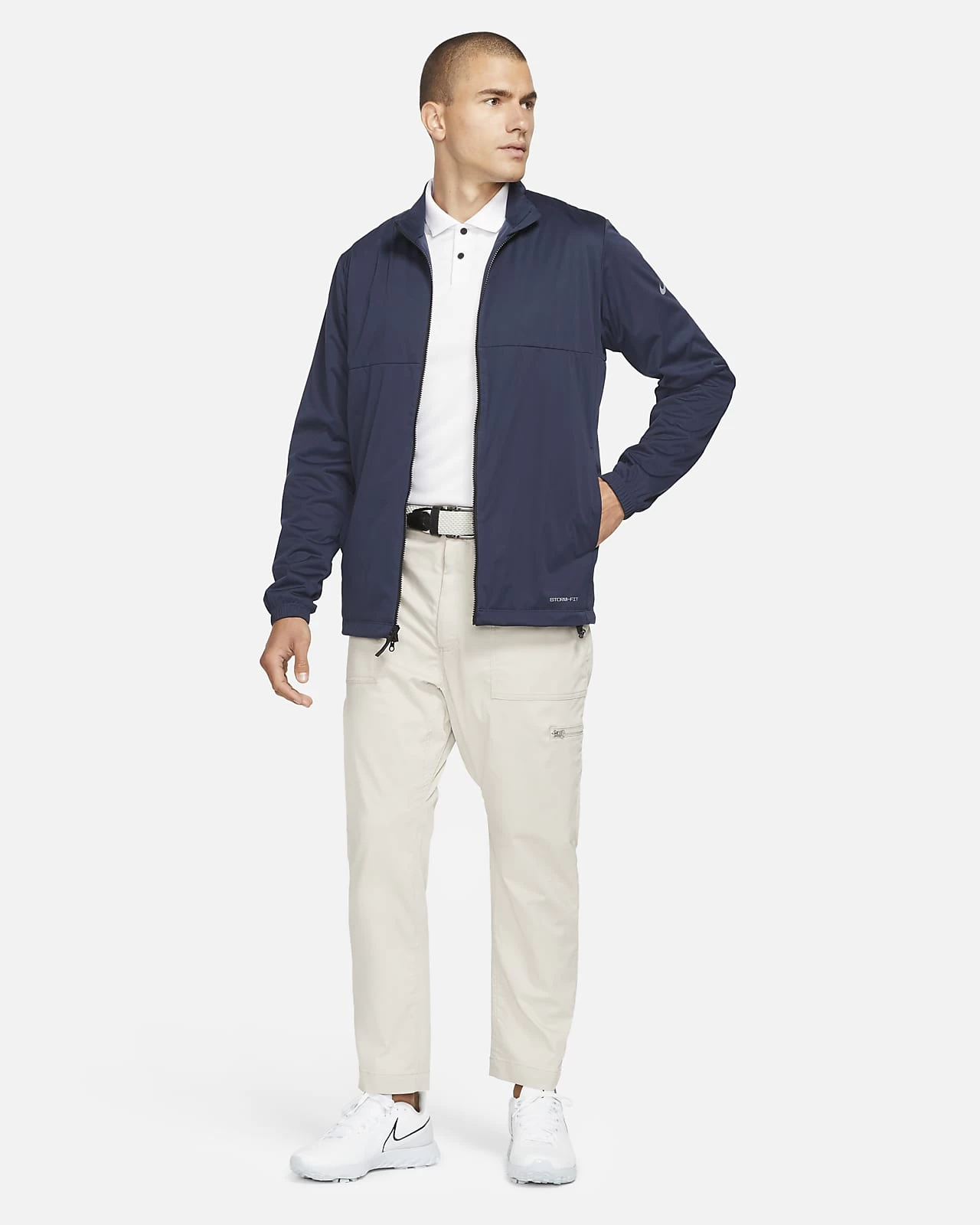 The Nike Storm-FIT Victory Golf Jacket is made from technical, quiet, weather-resistant material this jacket is sure to be you new go-to for rainy tee times. Intelligent design choices such as the notched collar prevents fabric from bunching under your chin at address so you can stay comfortable for a full 18.